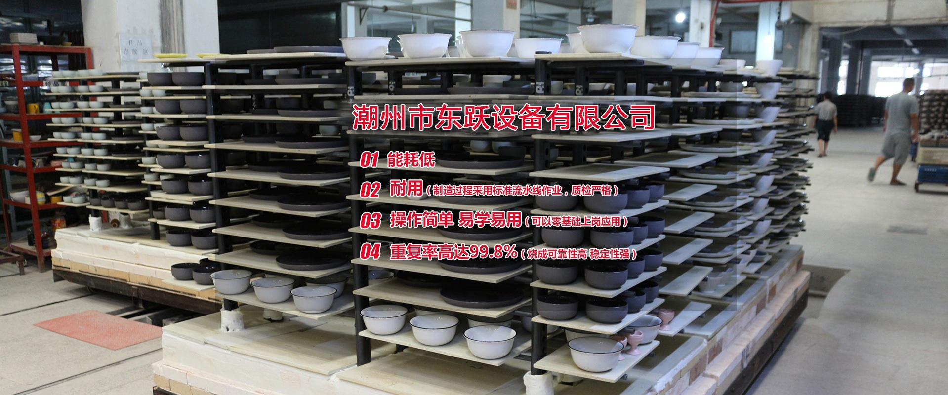 潮州市東躍設(shè)備有限公司,創(chuàng)立于公元2011年5月14日,經(jīng)過進十年的努力,已發(fā)展成一家擁有集研發(fā)、設(shè)計、加工制造、安裝、調(diào)試與售后一體化的窯爐公司。設(shè)計理念:1.能耗低2.耐用(制造過程采用標準流水線作業(yè),質(zhì)檢嚴格)3.操作簡單 易學易用(可以零基礎(chǔ)上崗應用)4.重復率高達99.8%(燒成可靠性高 穩(wěn)定性強)   現(xiàn)有設(shè)計人員10名,加工制造和安裝人員約100人,調(diào)試人員10人,售后服務人員10人,公司總?cè)藬?shù)約200人。公司本著以人為本的發(fā)展策略,不斷網(wǎng)絡人才,發(fā)展自動化窯爐技術(shù)。